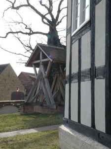 Die Dorfkirche aus dem 18. Jahrhundert ist ein rechteckiger Fachwerkbau mit polygonalem Ostschluß. Auf dem Kirchhof befindet sich ein frei stehender Glockenstuhl.