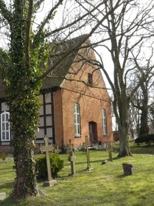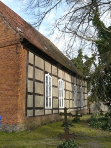Die Dorfkirche aus dem 18. Jahrhundert ist ein rechteckiger Fachwerkbau. Der Westgiebel wurde nachträglich massiv erneuert. Auf dem Kirchhof stehen noch einige gusseiserne Grabkreuze.